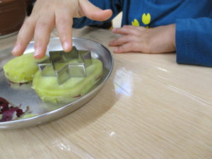広がります。ぬいた形を、最後に飾って、『さつまいもおはぎ』