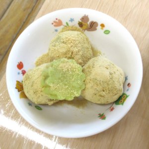 きな粉を絡めました。香ばしいかおりがランチルームに