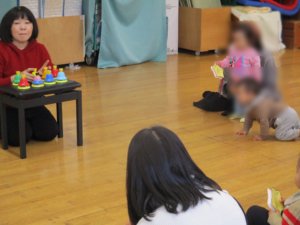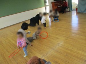 お母さんに抱っこしてもらったり手を繋いで楽しみました。