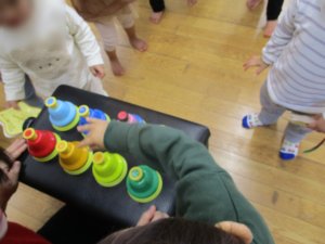 歌に合わせて星を振ったりひねったり「手首をひねる」動きは子ども達に