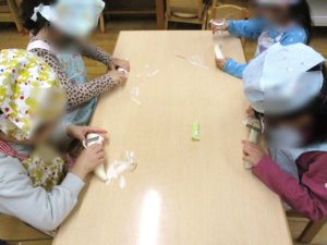 きりん組さんは初めてのピーラーを使います。