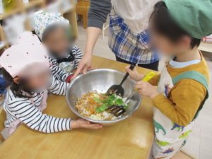 きりん組(4歳児クラス)~楽しかったね クッキング~