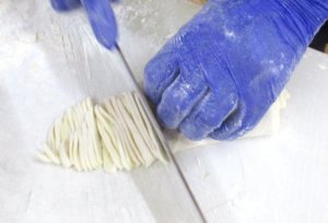 麺棒で薄くのばし、きっていきます。